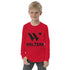 The Youth Long Sleeve Shirt is made of Airlume combed and ringspun cotton, which is known for its softness and durability. The shirt has a regular fit, classic crew neck, and ribbed cuff.